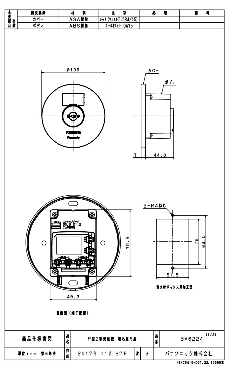 パナソニック BV6224 (BV6223後継品) 発信機 P型2級発信機埋込屋内型