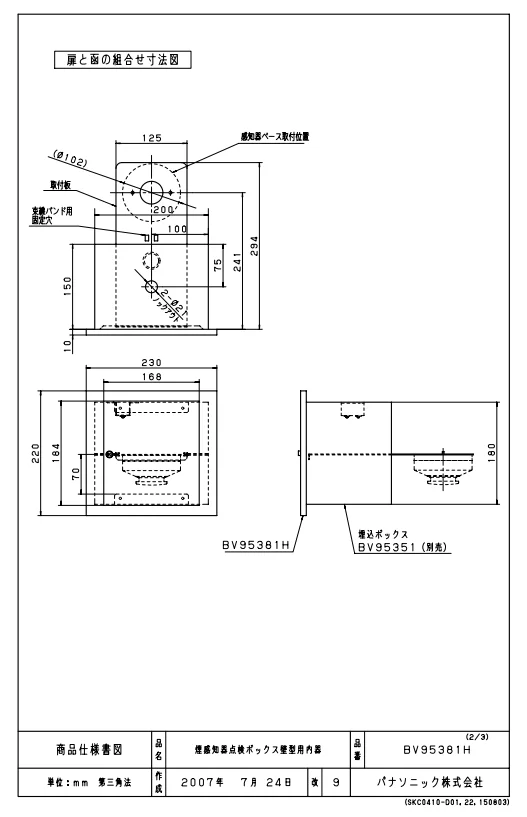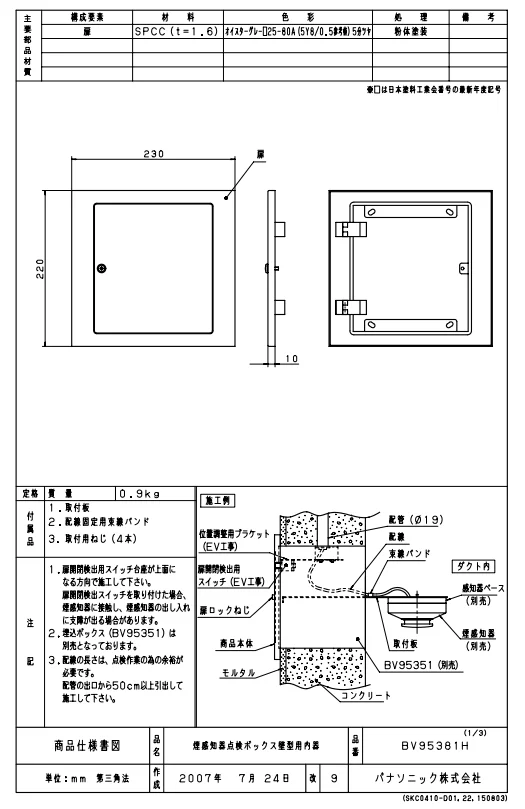 BV95381H パナソニック 煙感知器点検ボックス 壁型用内器