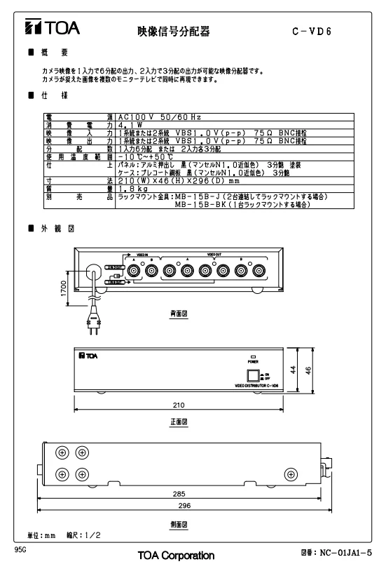 C-VD6 TOA 映像信号分配器 1入力6分配(2入力3分配)