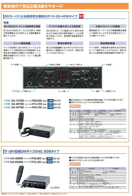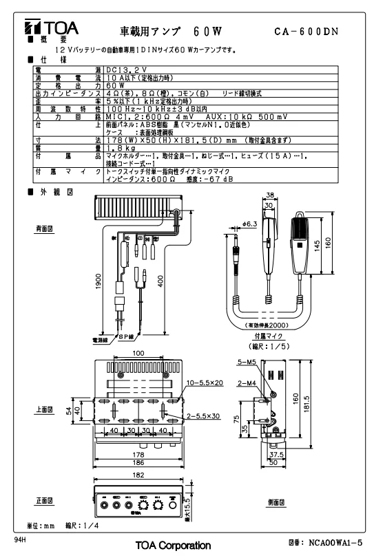 CA-600DN TOA 車載用アンプ 60W マイクロホン付属