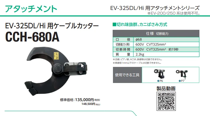CCH-680A カクタス 純正品 ケーブルカッター アタッチメント EV-325シリーズ専用