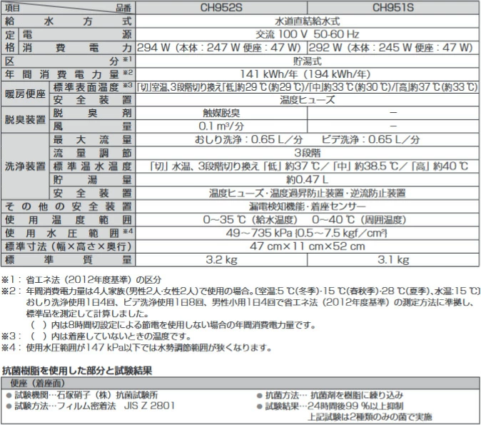 消費電力:292W(本体245W、便座47W)