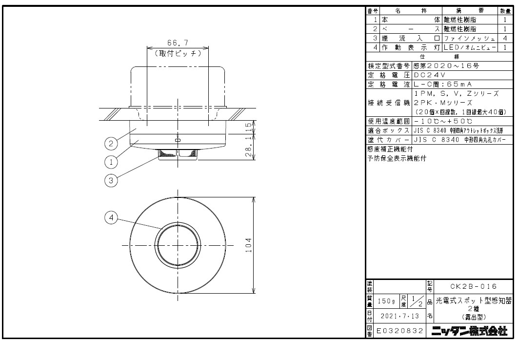 CK2B-016はニッタン製の光電式スポット型感知器です。2種ヘッドのみでベース別売りとなります。 試験機能FAS2対応。 2KH3後継品。