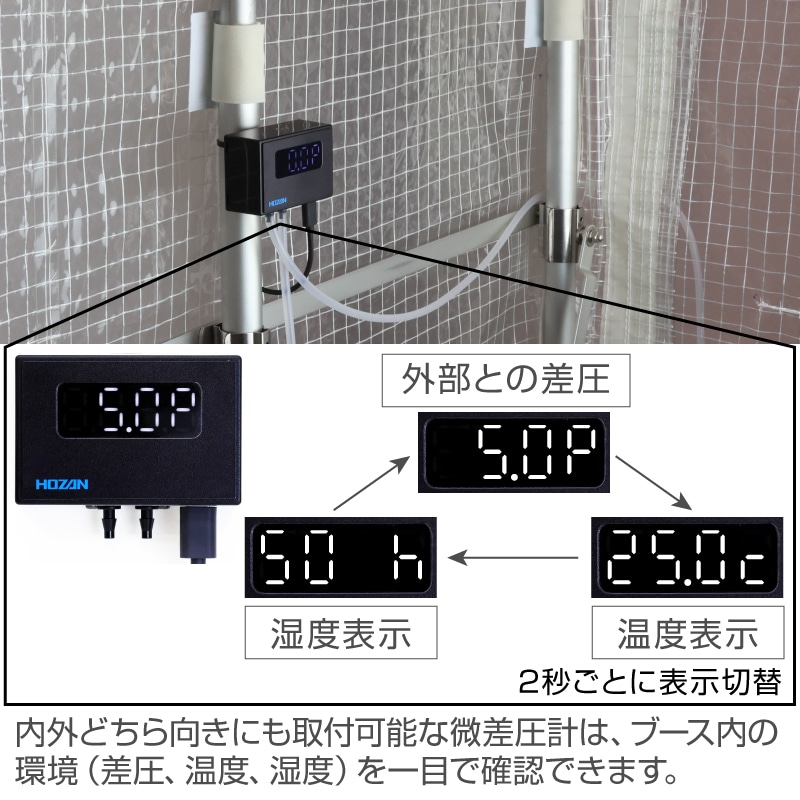 現場周囲の清浄環境を保つ微差圧計付陰圧ブース(ドラフトブース)