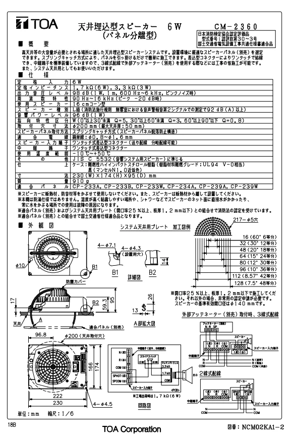 CM-2360 TOA 高効率天井埋込スピーカー 3W/6W L級 16cmタイプ