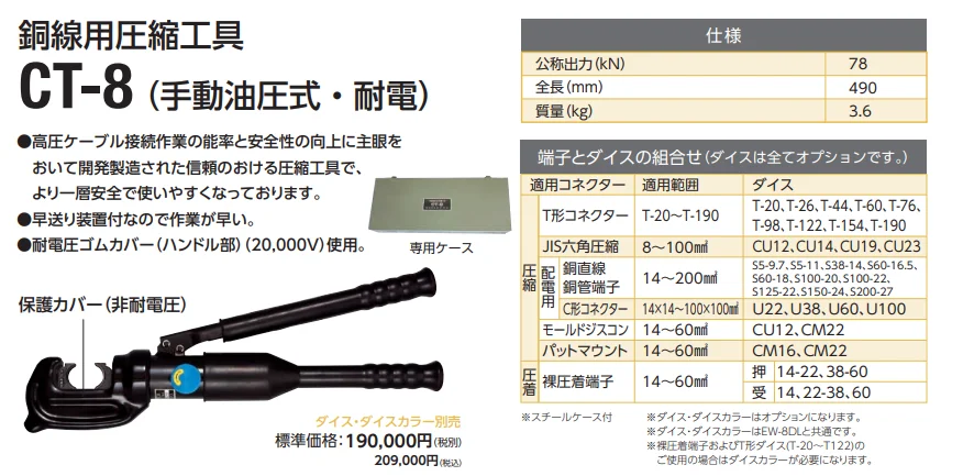 - 種別: 手動油圧式圧縮工具(耐電)