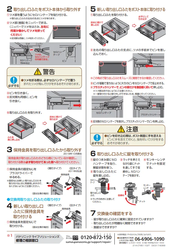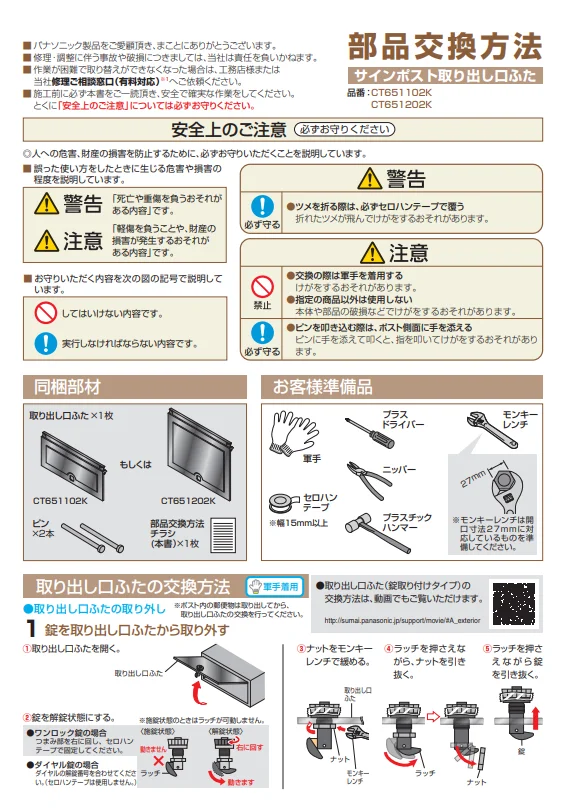 CT651102K パナソニック 純正部品 取出口蓋セット(1B用錠取付タイプ)ポスト部品