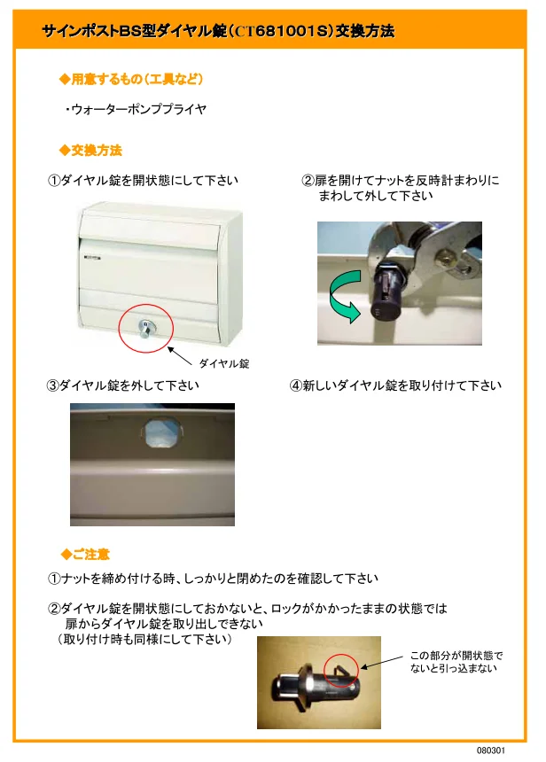 CT681001S パナソニック 純正部品 BS型ダイヤル錠 ポスト部品 【送料全国一律275円】