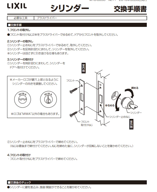 DCZZ0017 LIXIL・トステム 純正部品 ドア錠セット MIWA URシリンダー玄関引戸部品 本体2個 キー5個セット