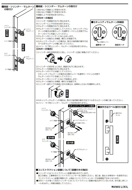 DDZZ4023 LIXIL・トステム 純正部品 ドア錠セット ユーシン WNシリンダー 玄関ドア部品 本体1個 キー5個セット