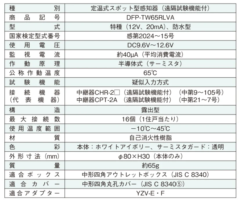 DFP-TW65RLVA ホーチキ 定温式スポット型熱感知器 防水型 遠隔試験機能付