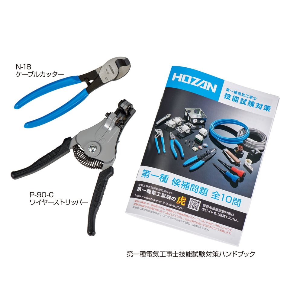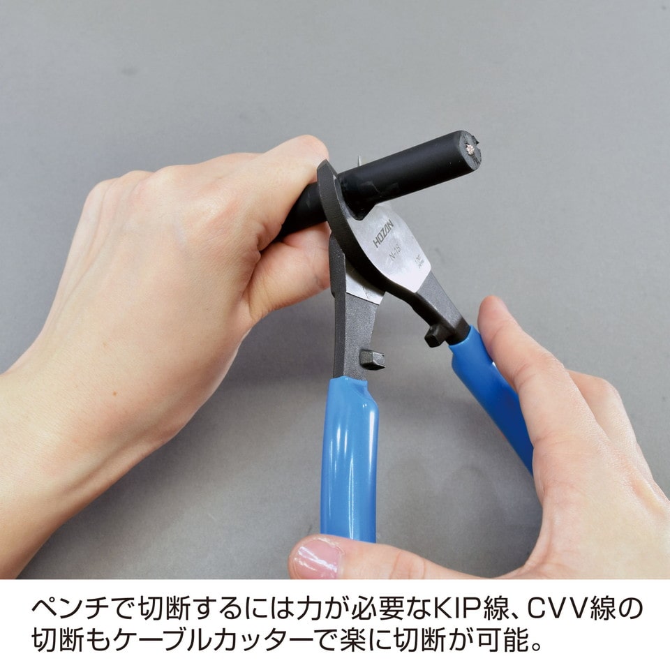 より線に対応したP-90-C ワイヤーストリッパー、KIP8mm2などの太い電線を楽に切断できるN-18 ケーブルカッターを入組。