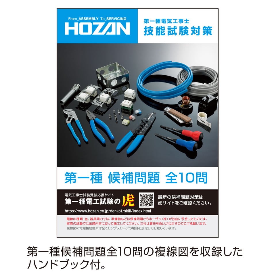 第一種電気工事士技能試験の候補問題全10問のポイントを解説した第一種技能試験対策ハンドブックを入組しています。