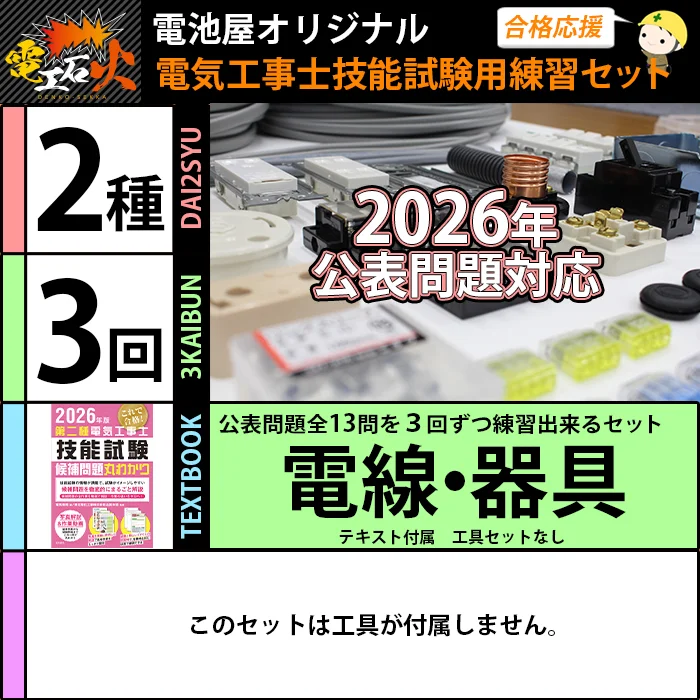 第二種電気工事士 3回練習分 2026年対応 電気書院のテキスト付属 工具なし 技能試験練習セット 全13問分の電線・器具材料