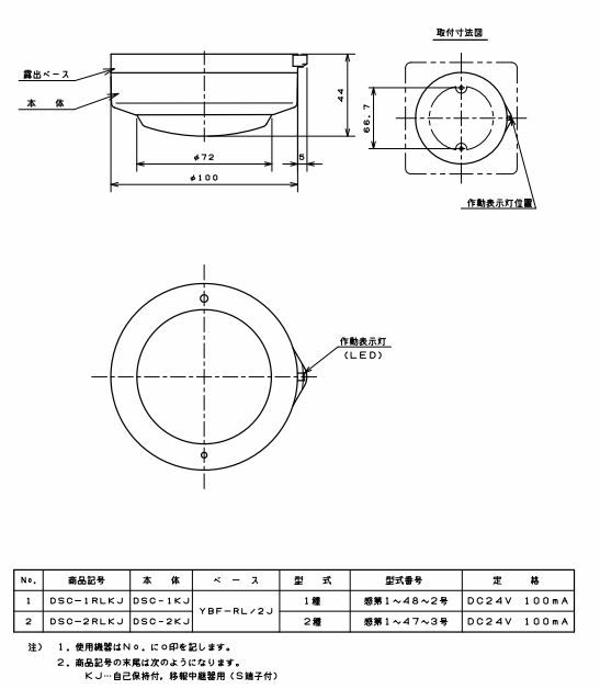 DSC-2はホーチキの差動式スポット型感知器2種ヘッドのみです。ベースは別売です。