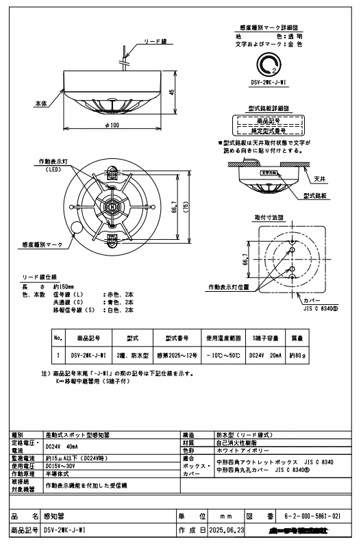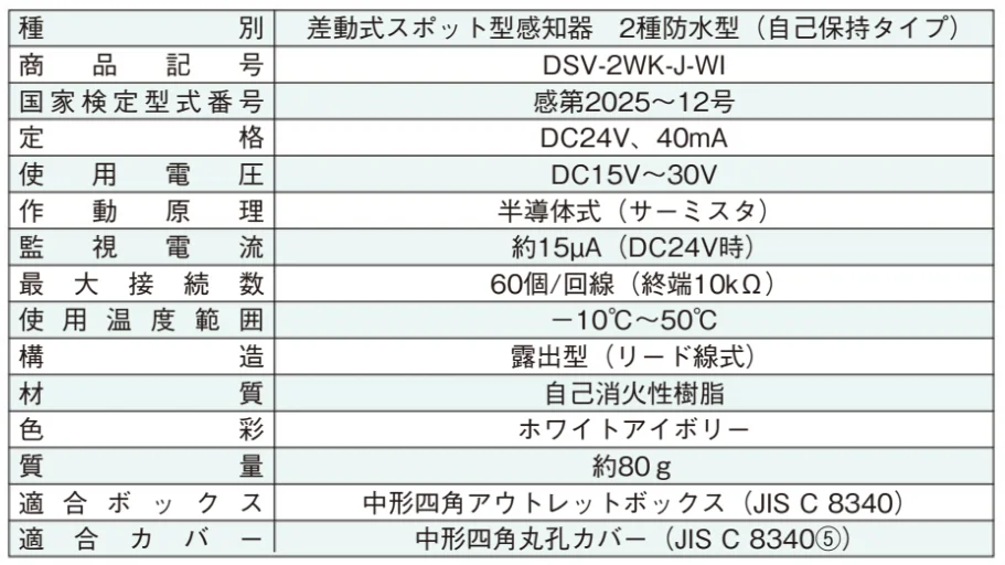 DSV-2WK-J-WI ホーチキ 作動式スポット型感知器 一体型 S端子(移報)付 防水型 露出型