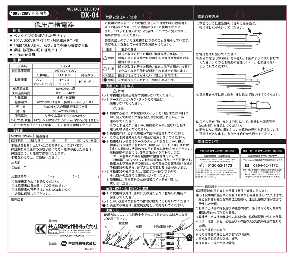 DX-04は共立電気計器の低圧用検電器です。この商品はDX-04 3個セットです。