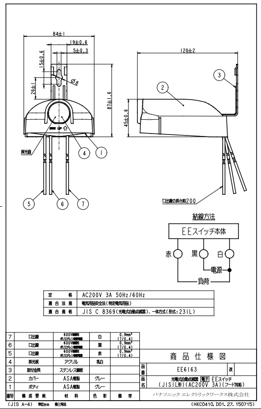 - その他: JIS1L形 AC200V3A フード対応