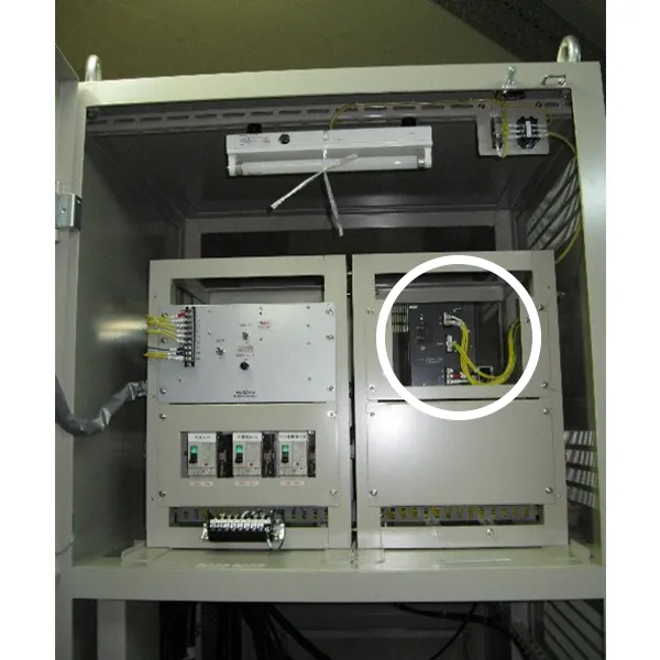 ※写真の丸印は直流電源盤に使われる搭載例を示しています。