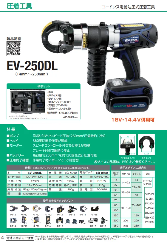 EV-250DL カクタス 18V/14.4V兼用圧着工具 CACTUS