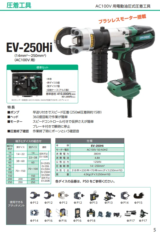 EV-250Hi-H カクタス 電動油圧式圧着工具 AC100V用 本体のみセット CACTUS