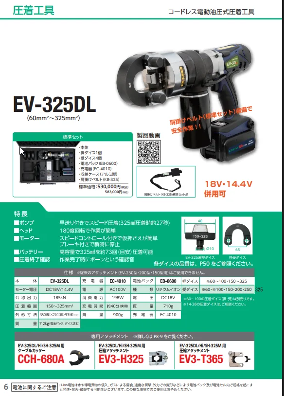 ●コードレス電動油圧式圧着工具(150mm2〜325mm2)
