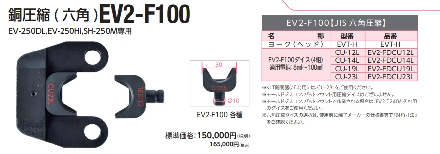 この商品には、EVT-Hヘッド、ダイス4組(CU12L,14L,19L,23L)が付属します。