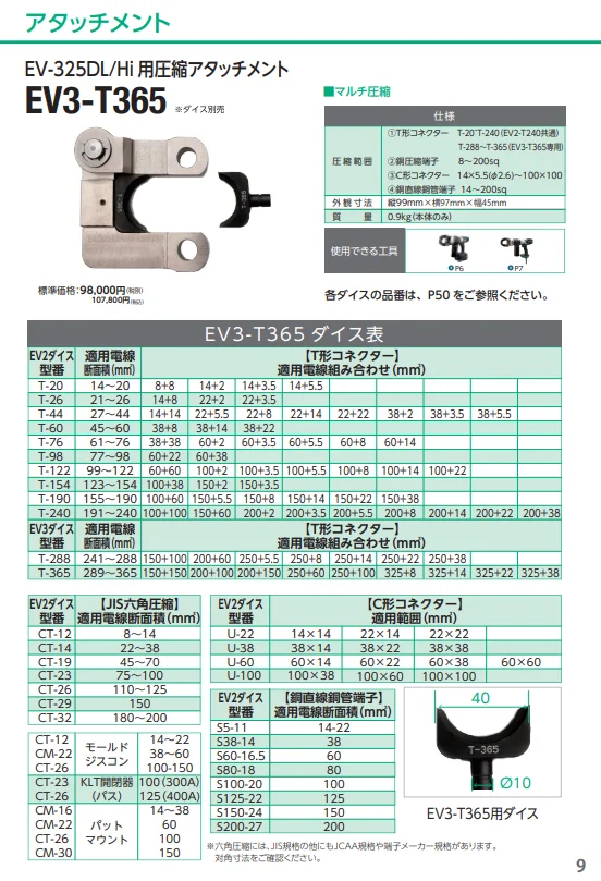 | コネクターおよびダイス名称 | T-288 | T-365 |