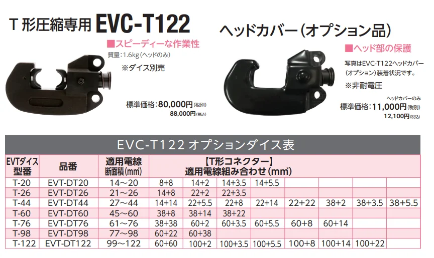| EVT-DT122 | T-122 | 99〜122 | 60+60 | 100+3.5 | 100+5.5 | 100+8 | 100+14 | 100+22 |