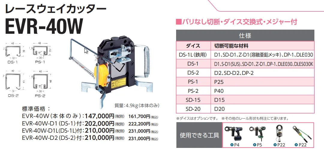 - その他: ※EV-325系は使用不可 ※ダイス別売