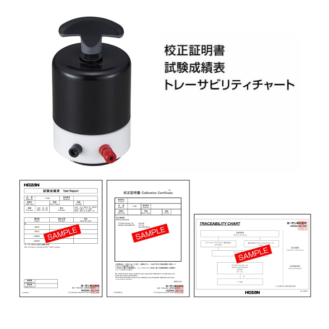 校正証明書、試験成績表、トレーサビリティーチャートの書類が含まれます。