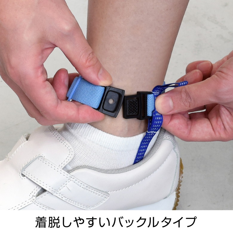 足首に装着するタイプのストラップ。バックル式で着脱が簡単です。