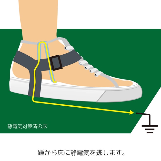 人体~靴~床へと静電気を逃がす、立ち作業に適したストラップ