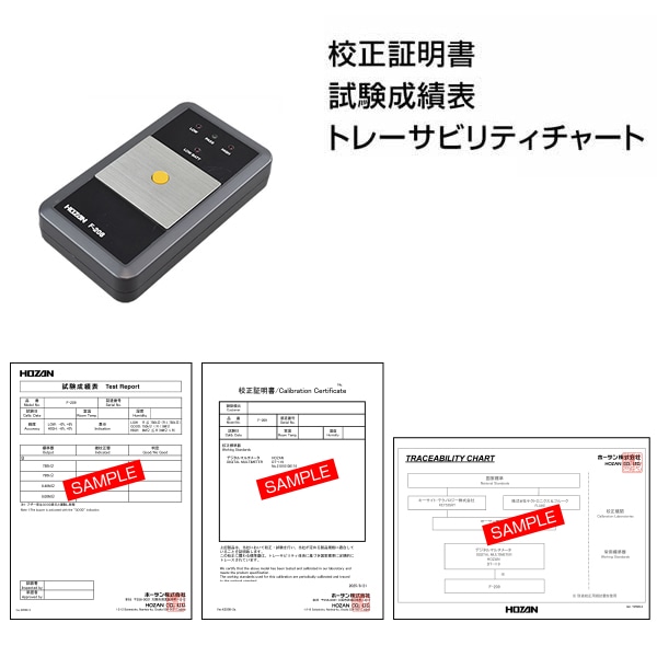 校正証明書、試験成績表、トレーサビリティーチャートの書類が含まれます。