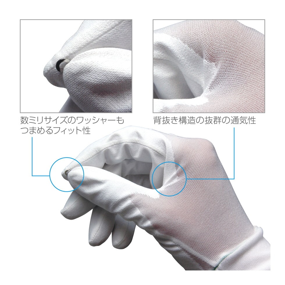 ※指先のフィット性を高めるため、他のESDグローブに比べ、指長さは短めの設定としています。