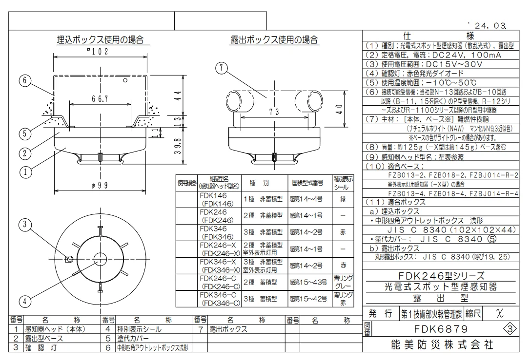 FDK146 能美防災製 光電式スポット型感知器 1種 露出型 ヘッドのみ ベース別売り