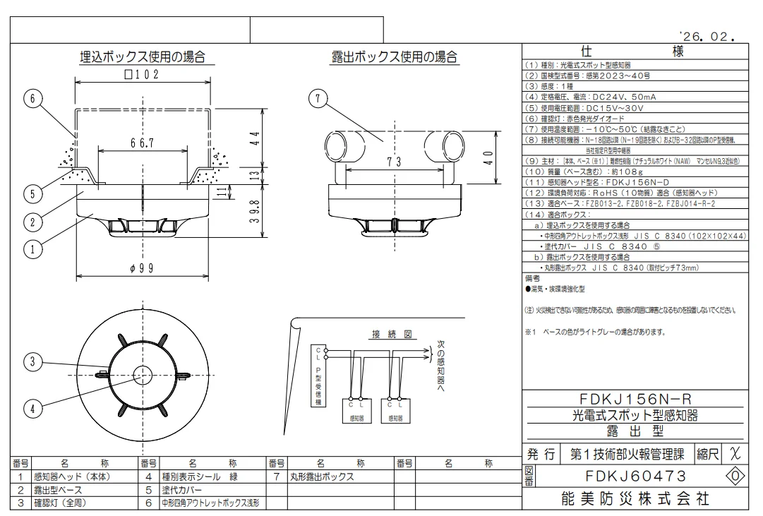 FDKJ156N-D 能美防災 光電式スポット型感知器1種 ヘッドのみ ベース別売 自動火災報知設備用