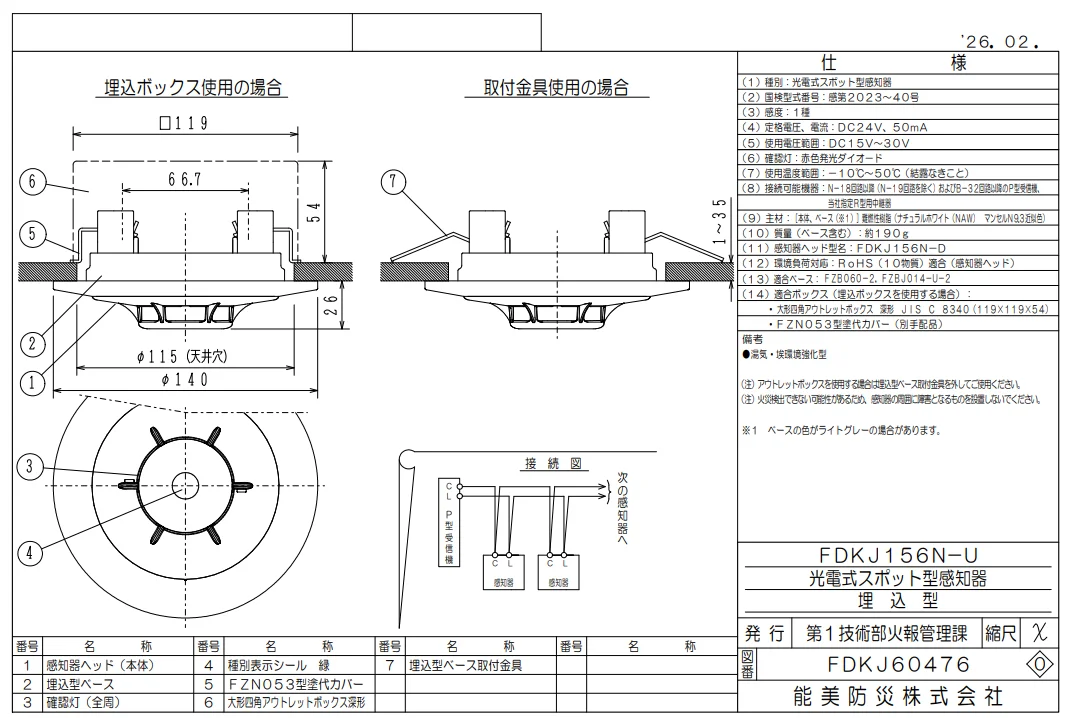 FDKJ156N-Dは能美防災の光電式スポット型感知器1種でヘッドのみ、ベース別売りです。