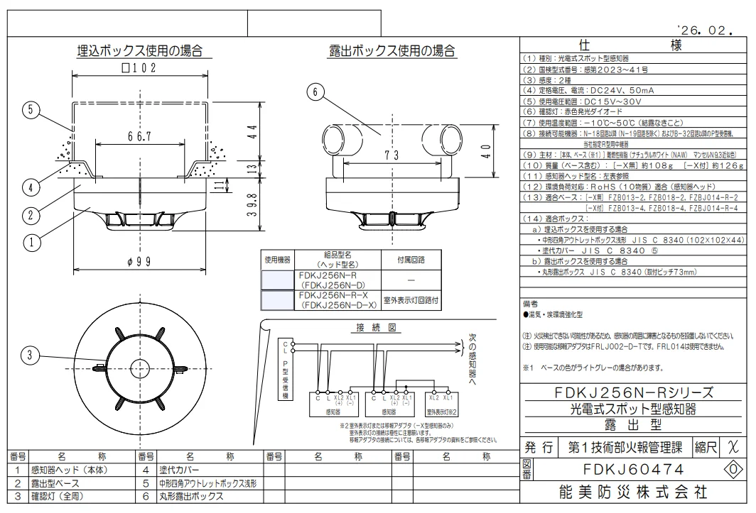 FDKJ256N-Dは能美防災の光電式スポット型感知器2種 露出型です。ヘッドのみ、ベース別売りです。