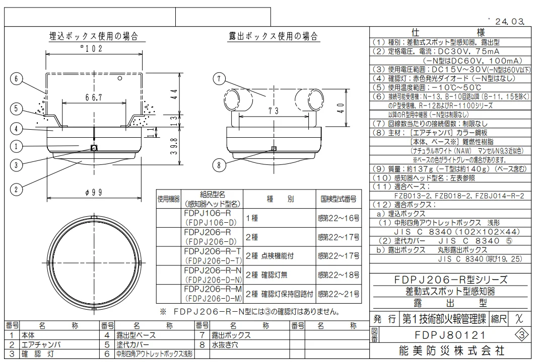 FDPJ206-D 能美防災(ノーミ)製 差動式スポット型感知器2種 ...