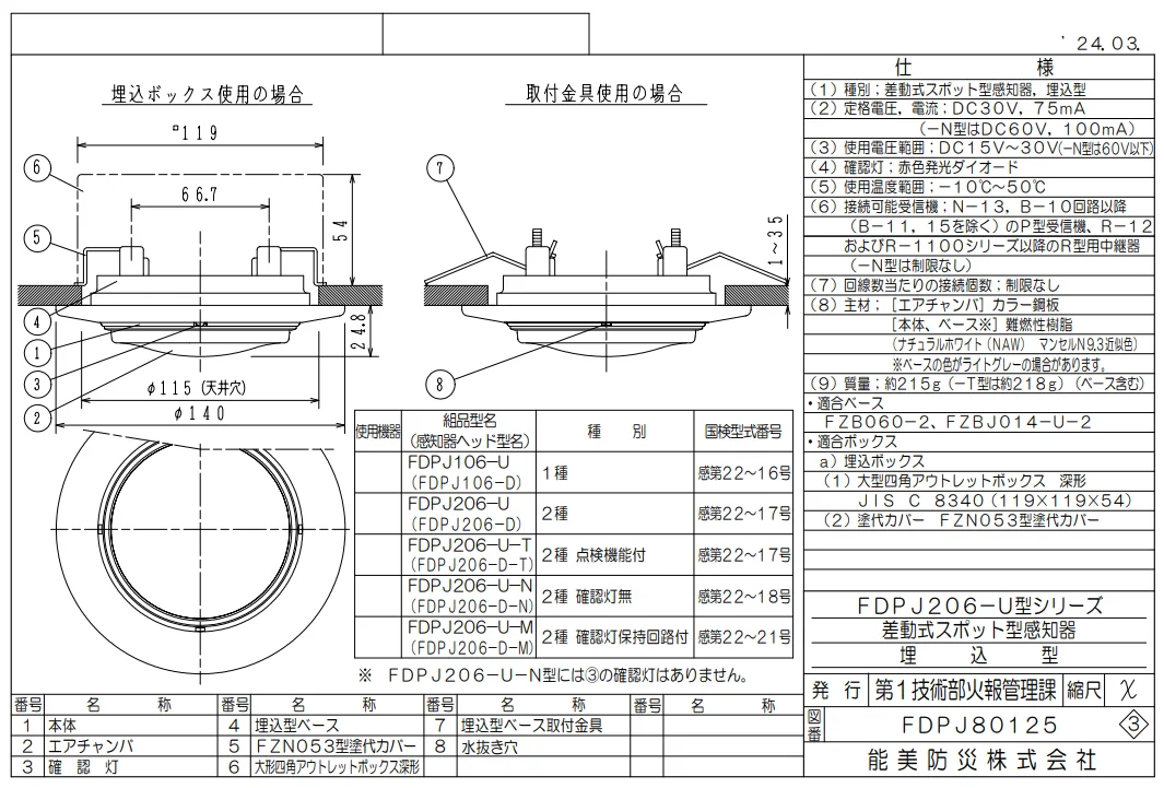 FDPJ206-D-M 能美防災 差動式スポット型感知器2種 熱感知器 確認灯保持回路付 ヘッドのみ ベース別売 Normi