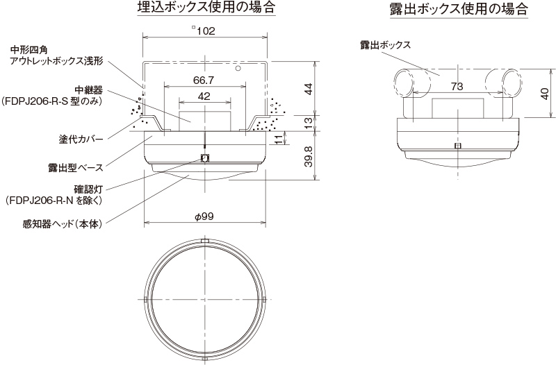 能美防災(ノーミ)製 FDPJ206-R 差動式スポット型感知器2種 ヘッドFDPJ206-D・ベースFZB018-2付