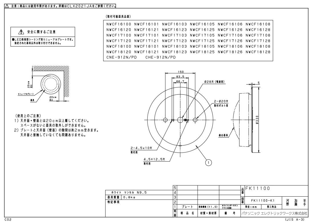 FK11100 パナソニック 新品 リニューアルプレート 防雨型シーリング(ブラケット兼用型)用 φ330
