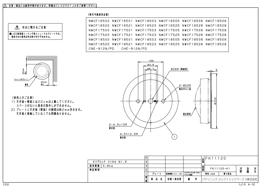 FK11120 パナソニック 新品 リニューアルプレート 防雨型シーリング(ブラケット兼用型)用 φ330