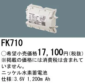 FK710 パナソニック メーカー純正品 新品 非常灯器具用交換電池 3.6V1200mAh