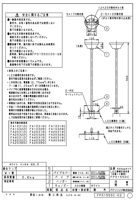 FP01550Cはパナソニックの誘導灯吊具です。