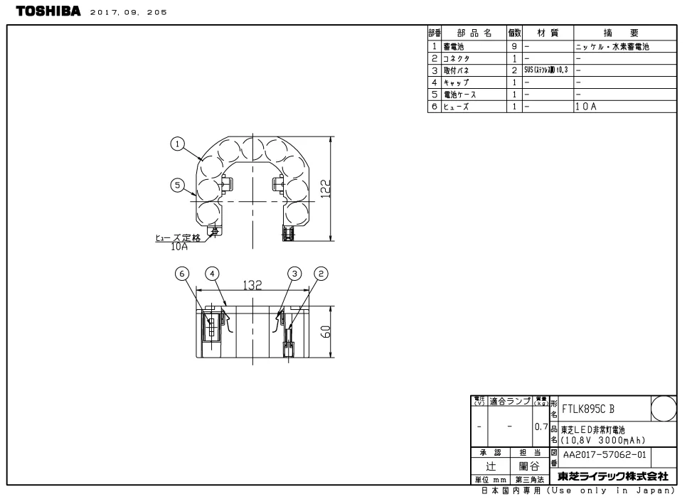 FTLK895CB 東芝ライテック 非常灯用交換電池 10.8V 3000mAh