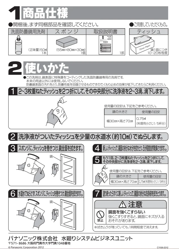 GQD11KS2 パナソニック 純正部品 くもりシャットミラー専用洗剤 Panasonic
