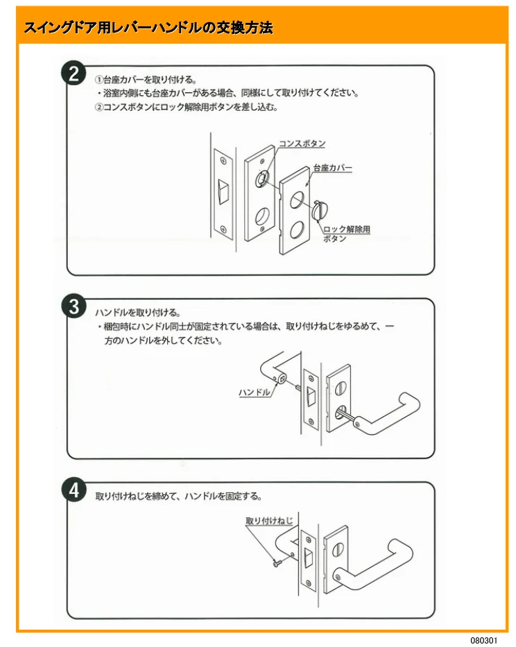 GRYGD5914 パナソニック 純正部品 スイングドア用 レバーハンドル ホワイト