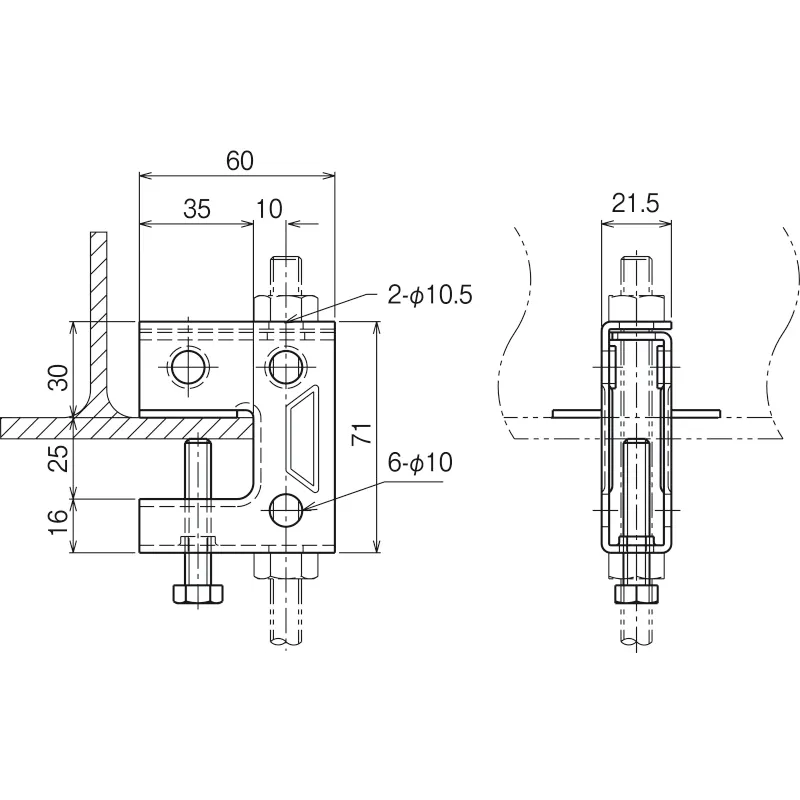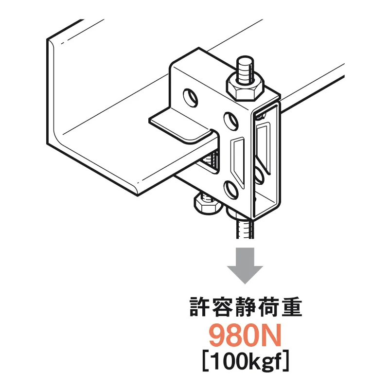 - 種別: 一般形鋼・リップみぞ形鋼用吊りボルト支持金具